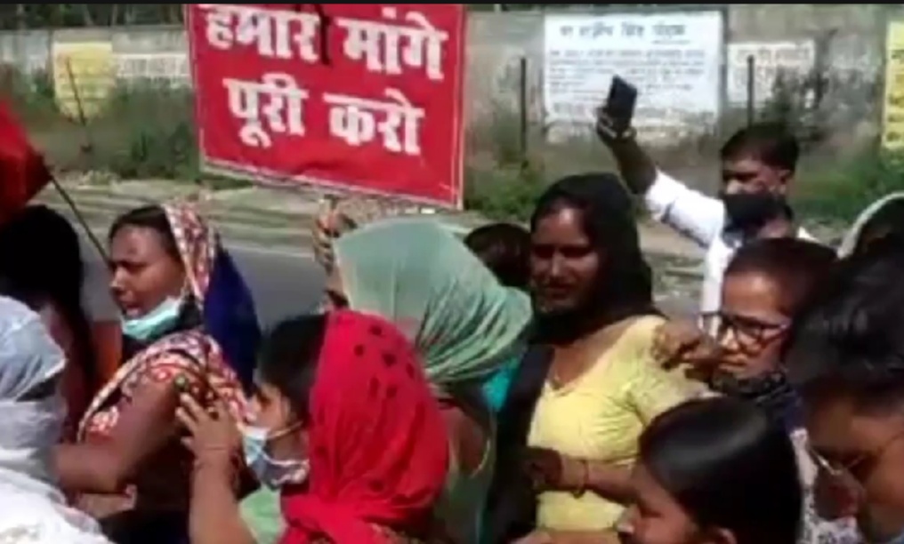 सत्यम ऑटो कम्पनी से निष्कासित कर्मचारी और उनके परिवारों ने सिडकुल में निकली विरोध यात्रा