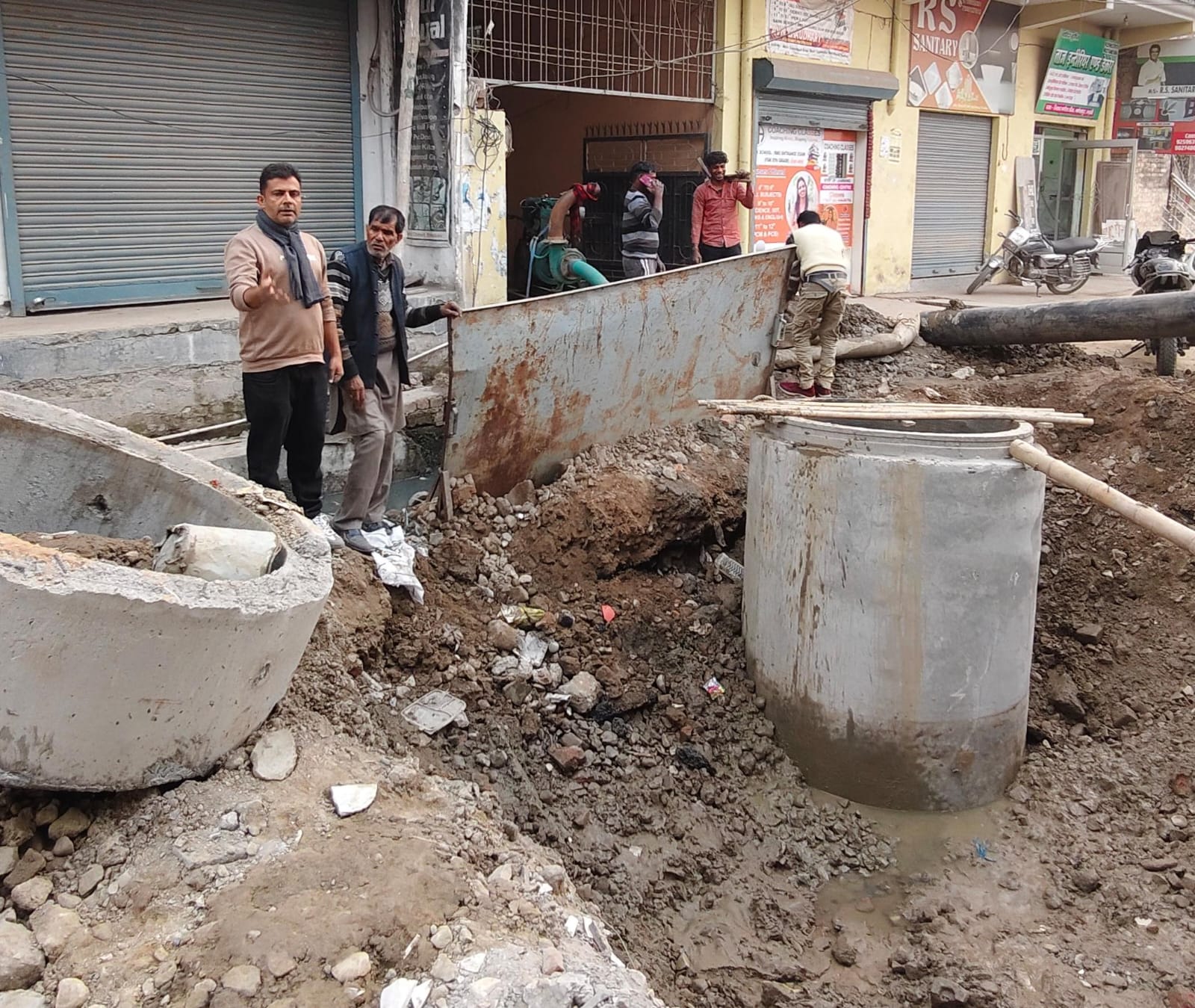 गणेशपुर के एडीबी भू धंसाव का सहायक अभियंता जुनैद गौड ने किया निरीक्षण